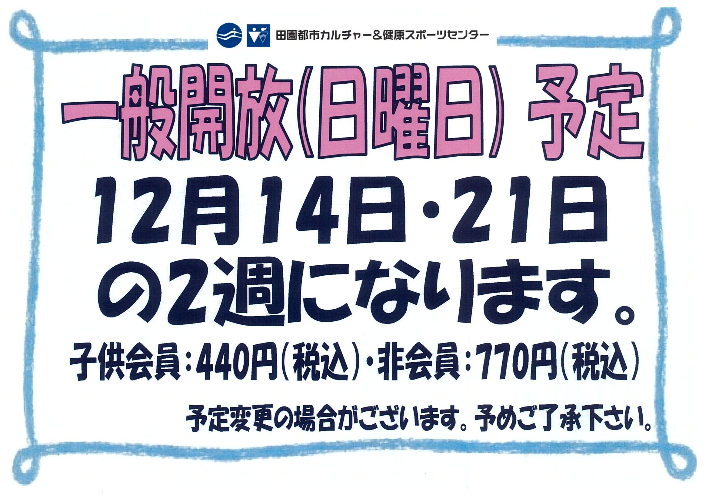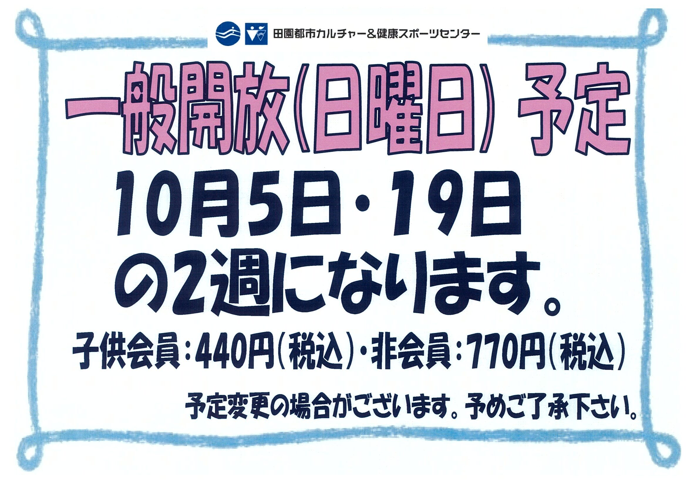 日曜日(不定期)の11:15~13:00迄、非会員の皆様にも温水プールをご利用頂けることになりました。